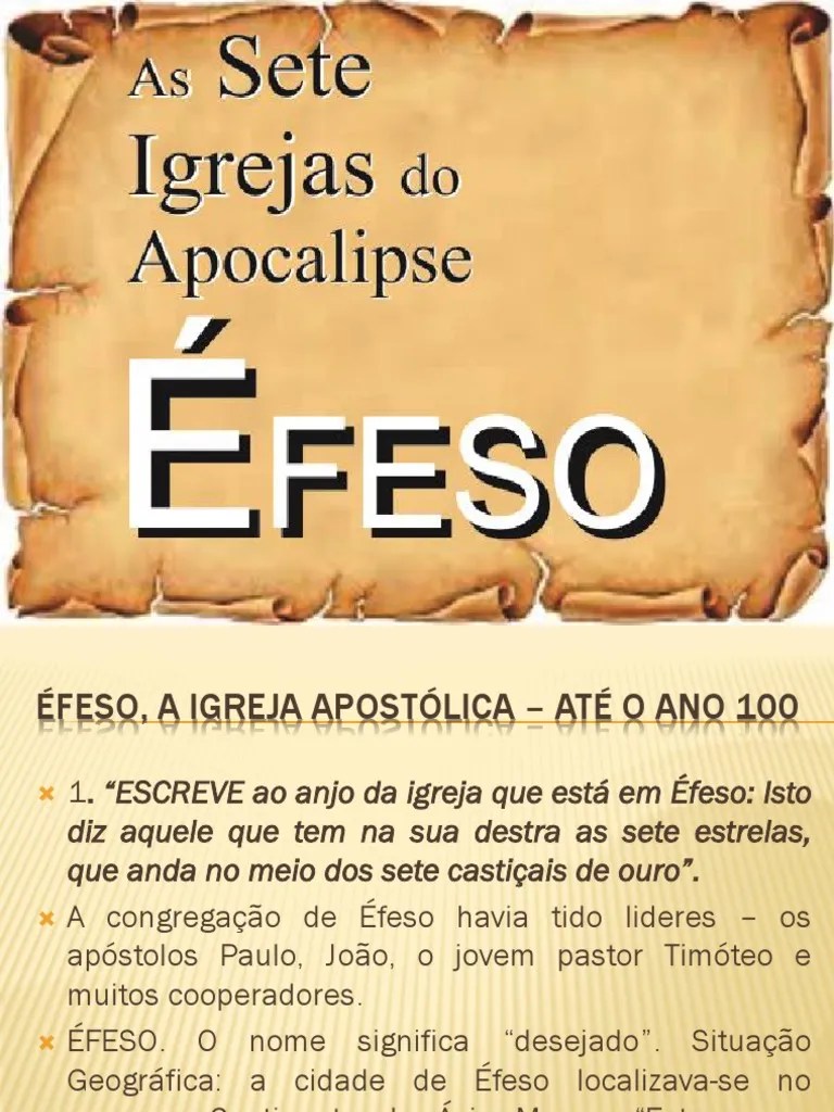 Ele exorta também ao fiel povo de deus que "quem tiver ouvidos, ouça o que espírito diz" (apocalipse 2:7, 11, 17, 29; Um cristianismo puro, fervoroso e cheio de amor. Quero escrever esse estudo trazendo verdades práticas para nossas vida e ensinamentos valiosos. Se dedicavam à sã doutrina de cristo. Éfeso representa a igreja apostólica na história da igreja, entre os anos 30 a 100 d.c. 2 conheço as suas obras, o seu trabalho árduo e a sua perseverança. Mensagem a igreja de éfeso texto bíblico: Corresponde à época dos apóstolos. Precisamos do mesmo zelo da verdade hoje... Corresponde à época dos apóstolos.